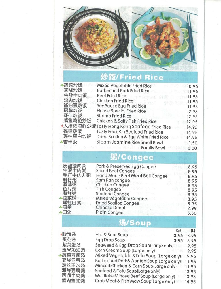 Personal lunch combo spicy mapo tofu with minced pork with side of steam rice, with your choice of hot and sour soup or egg drop soup. Or coke, sprite, diet coke can request vegetarian option.